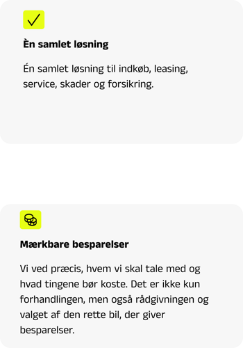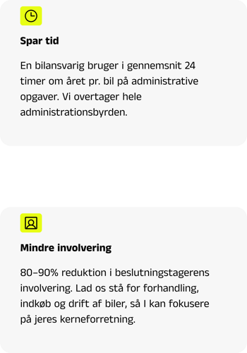 80-90% reduktion i beslutningstagerens involvering. Lad os stå for forhandling, indkøb og drift af biler, så I kan fokusere på jeres kerneforretning.